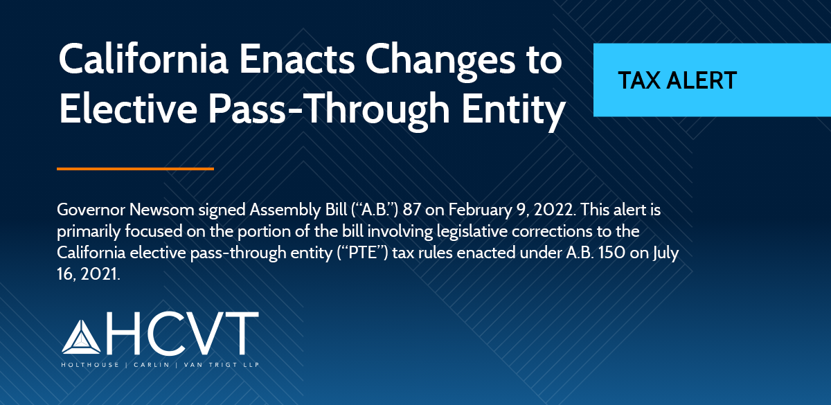 California Enacts Changes To Elective Pass Through Entity Tax Hcvt State Local Tax Holthouse Carlin Van Trigt Llp